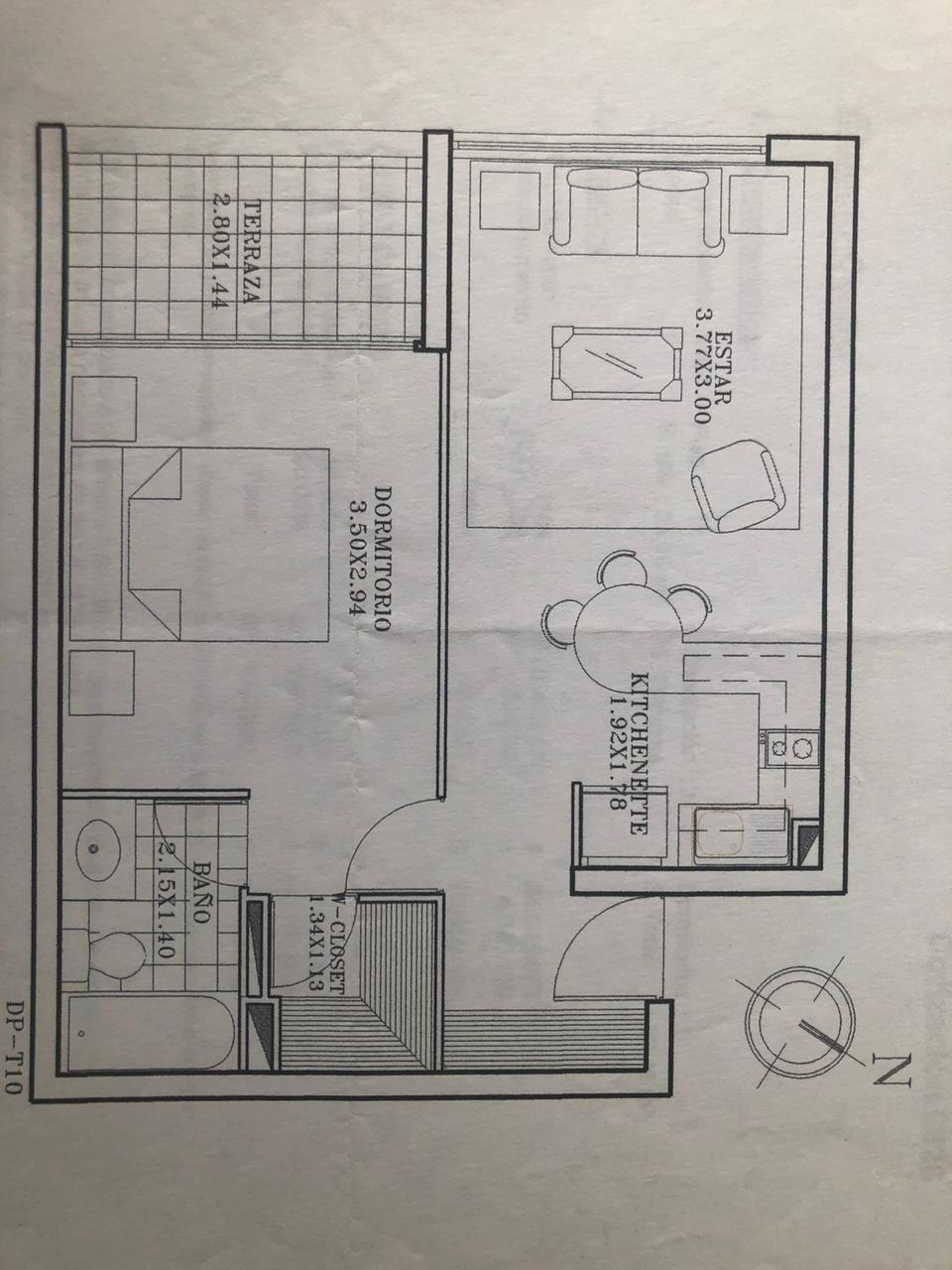 Descripción: 1 dormitorio con baño en suite, walk-in closet, living comedor, cocina americana. Terraza en el dormitorio. Clóset en el Hall.