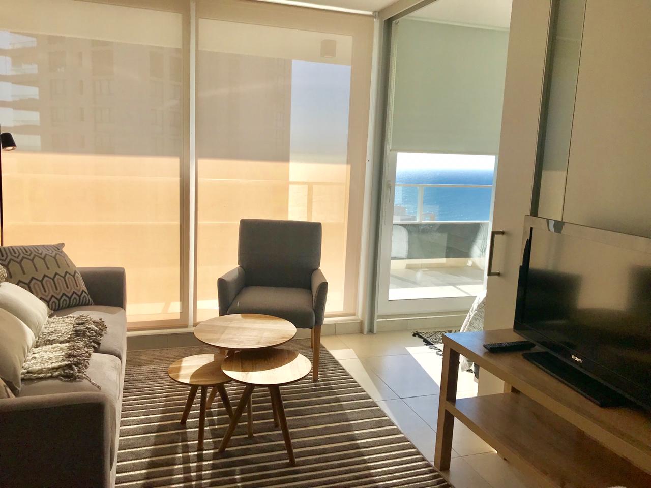 Precioso departamento de 2 dormitorios y 2 baños en Reñaca, con vista al mar, en piso 16. Estilo Mariposa.