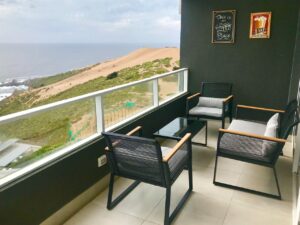 Terraza con vista al mar hacia Valparaíso y Concón, equipada con juego de terraza para descansar y disfrutar. Vista a las dunas de Concón.