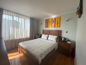 Hall de acceso con mampara, amplio living -comedor, cocina amoblada con cubierta de granito y equipada con encimera, horno eléctrico y campana, cuenta con un comedor diario. Conexión a Lavadora. Baño de visita. Dormitorio principal con baño en suite y walkin closet. Dos dormitorios con clóset. Baño completo. Cuarto dormitorio que puede ser usado como escritorio o pieza de servicio. Espacio para Home Office.